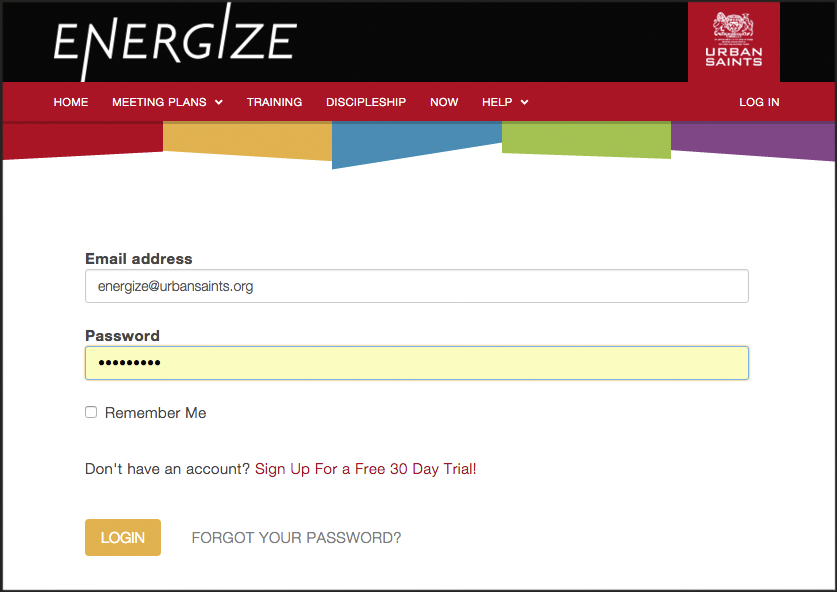 Please note: Each member of your group's leadership team should be registered on the Energize site and will therefore have their own unique log in.